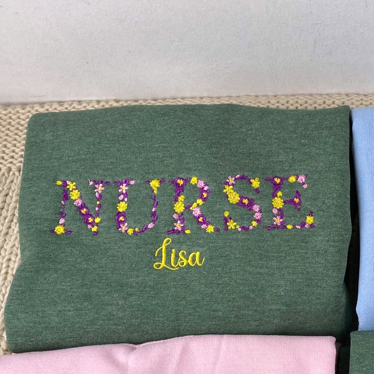 Custom Embroidered Nurse Sweatshirts & Hoodies are designed to celebrate healthcare professionals with a personal touch. Add names, titles, or heartfelt messages using elegant floral letter embroidery. Choose your preferred style, color, and customization for a unique look that stands out. These soft, high-quality garments are ideal as personalized gifts for nurses on birthdays, holidays, retirement, or appreciation events. Available in both sweatshirt and hoodie styles for men and women. Show your gratitude with a one-of-a-kind wearable keepsake that combines comfort, style, and meaningful customization.